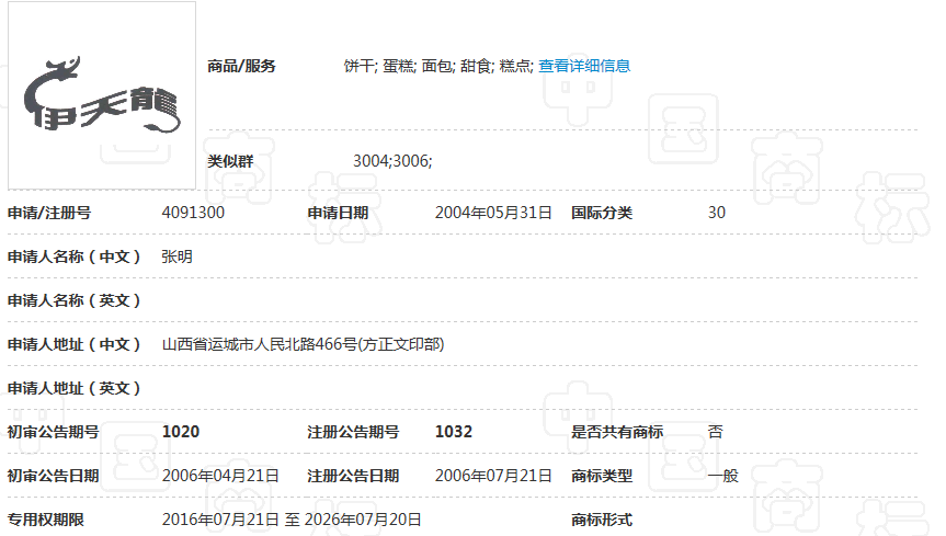 商標(biāo)出售:注冊十余年,狀態(tài)良好,適用食品糕點(diǎn)類